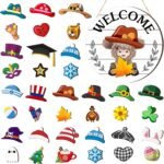 8 reviews for Vicenpal 35 Pcs Interchangeable Highlands Cow Welcome Sign Hanging Seasonal Cow Head Wooden Front Door Decor with 17 Interchangeable Hat 17 Magnet Swappable Pieces for Farmhouse Holiday (White)