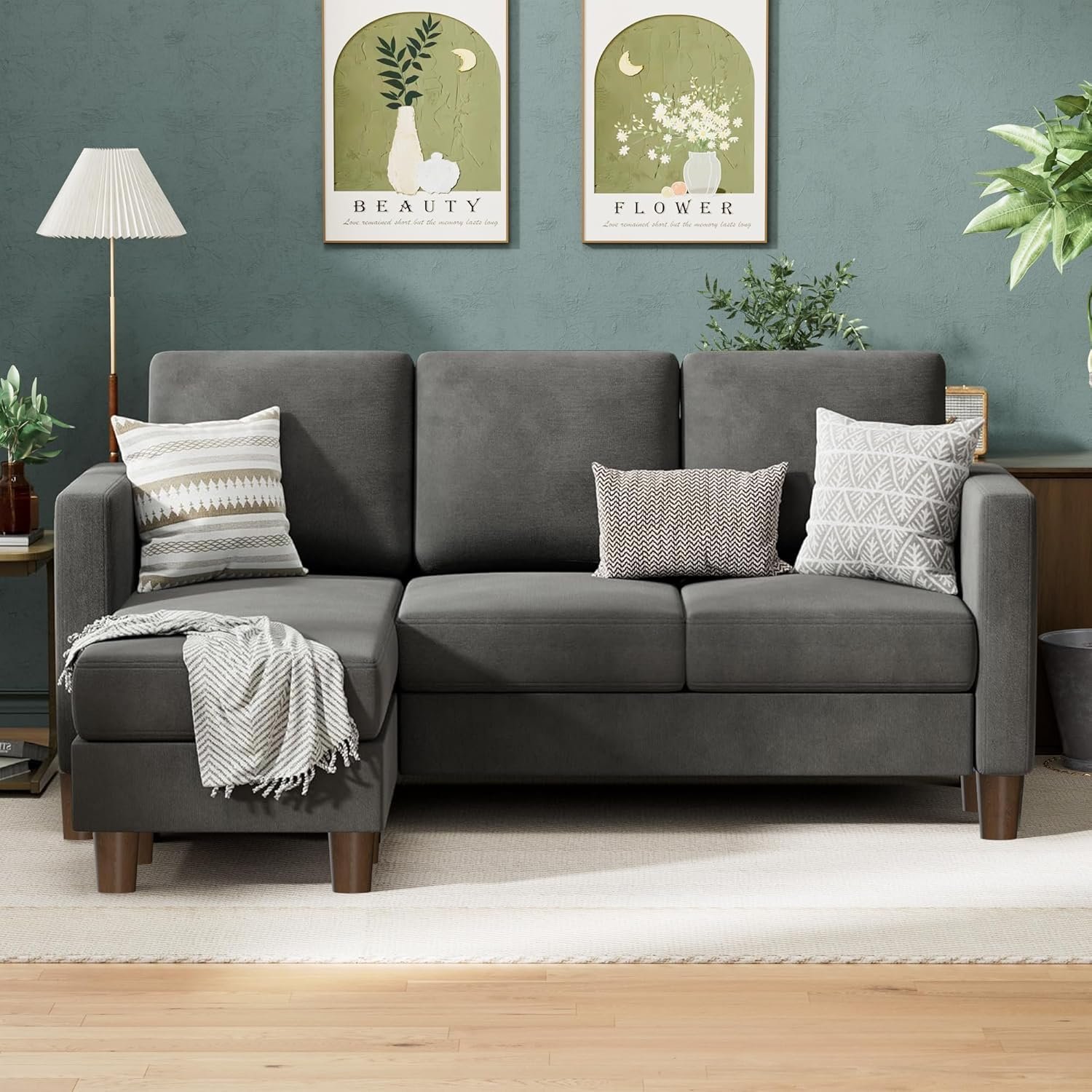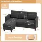 8 reviews for VICTONE Convertible Sectional Sofa Couch, 3 Seat L-Shaped Sofa with Linen Fabric Ottoman Small Couch for Small Apartments, Living Room and Office (Linen Fabric, Dark Gray)