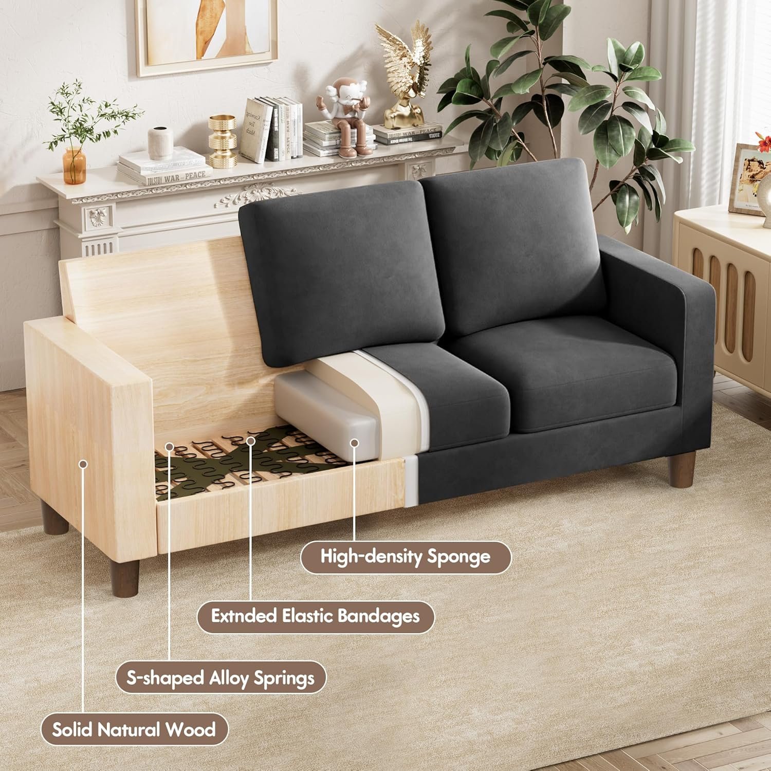 This sofa looks great and feels very comfortable. It’s easy to assemble and fits perfectly in my living room. Great quality for the price