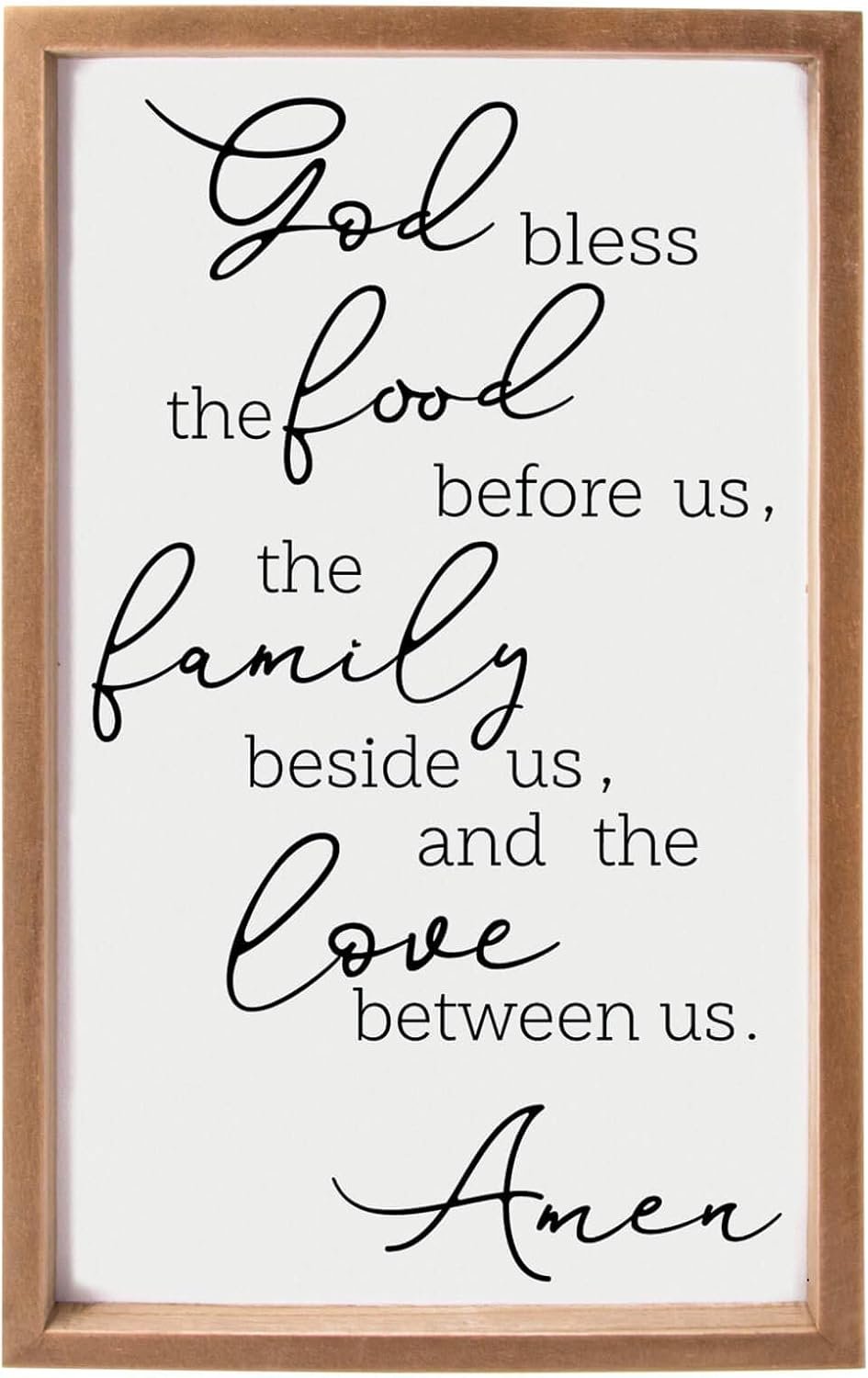 I love this sign. It’s such a beautiful quality. It doesn’t look like those sometimes-blurry screen-printed, modge-podged signs. This almost looks painted/stenciled directly on the wood.. which is a detail I prefer. The wood frame in the original image also looks slightly like an orange-y oak which I personally didn’t love, but since I loved the font and look of this sign so much, I bought it anyway with plans to paint the frame. However, I was pleasantly surprised that upon arrival, the wood frame actually has more of a grey-ish undertone unlike the stock photo (which is why I’m including pictures in natural daylight). This actually matches better with my decor, so I don’t need to paint the frame at all. I’m very happy with it as-is.