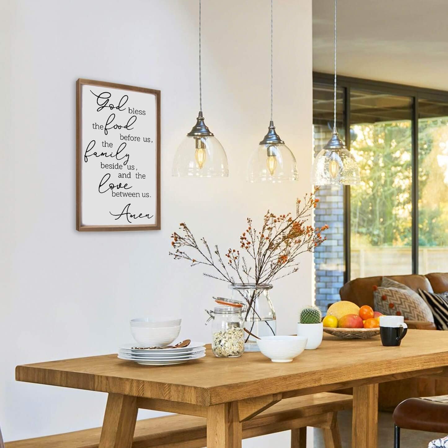 Very nice in my dining room. Very simple, clear printing, quality frame. I wish it had been it was a little bigger and some embellishment on it, but I love the message. The simplicity would be perfect in a picture grouping, I have it hanging alone.
