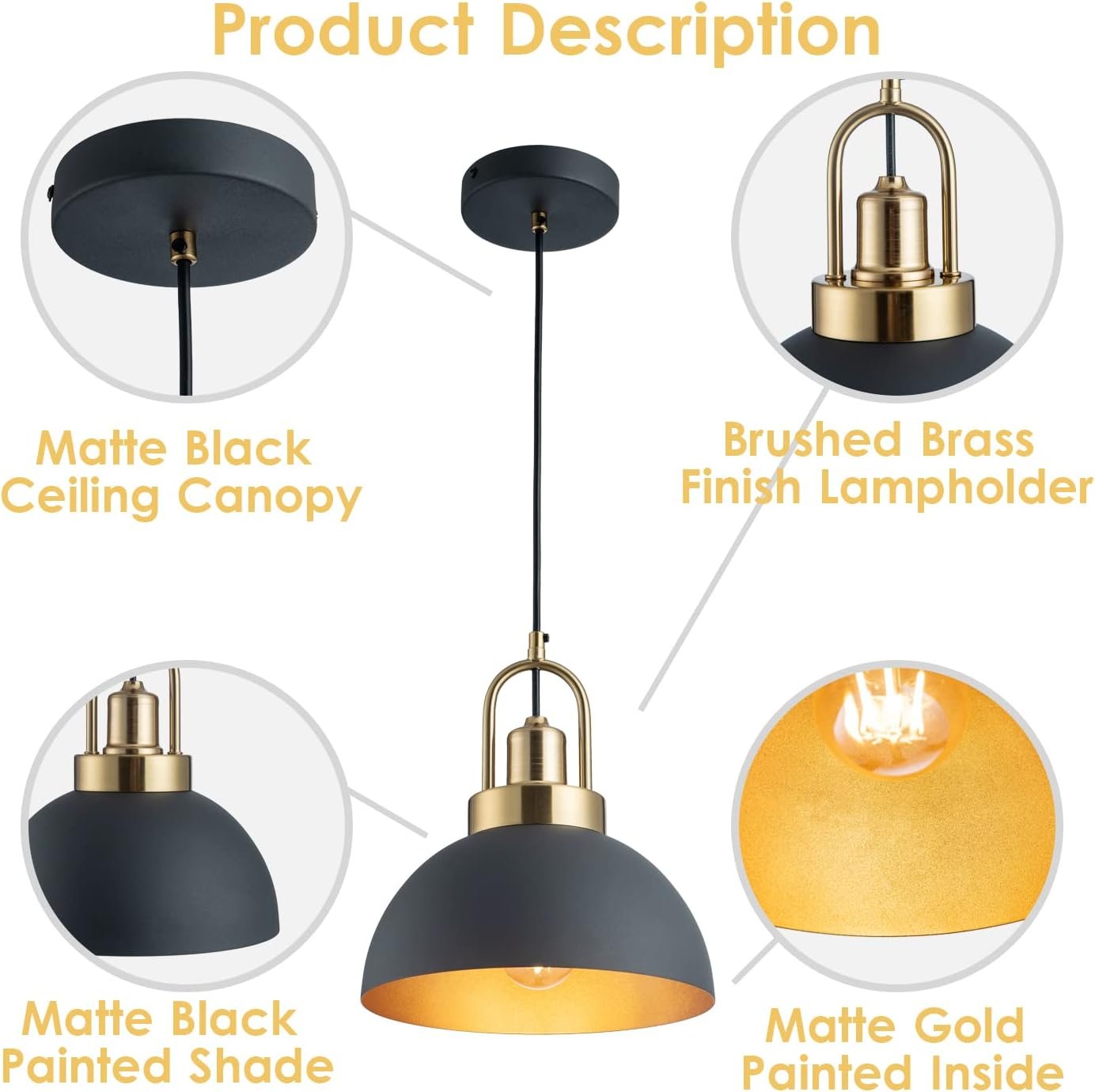 I ordered 3 pendants. Love them but a problem with one not being finished underneath dome, I.e. no gold. If not for this issue I would have given the product 5 stars. Just check before installing. Unfortunately mine have been installed. Trying to resolve with Seller but no response yet.