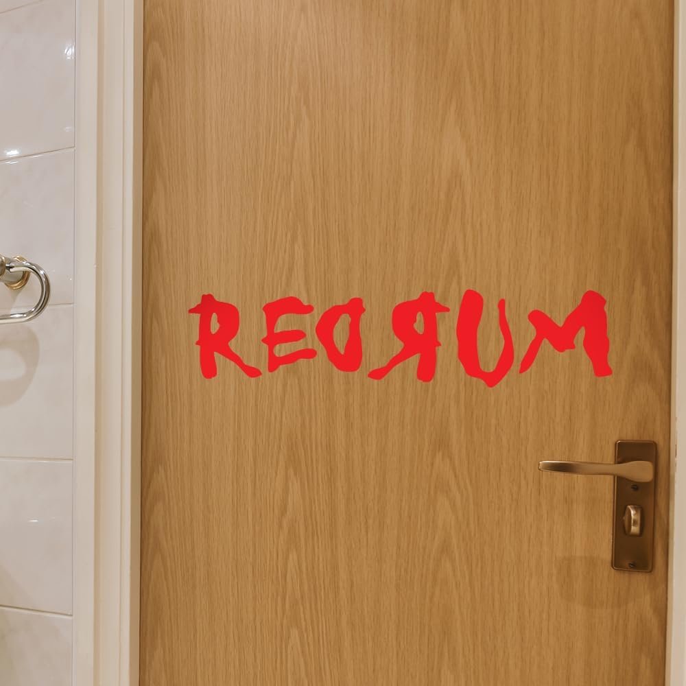4 reviews for Vinyl Wall Art Decal – Redrum – 6″ x 30″ – Trendy Scary Halloween Season The Shining Quote Sticker for Living Room Entryway Door Office Coffee Shop Store Windows Spooky Decor