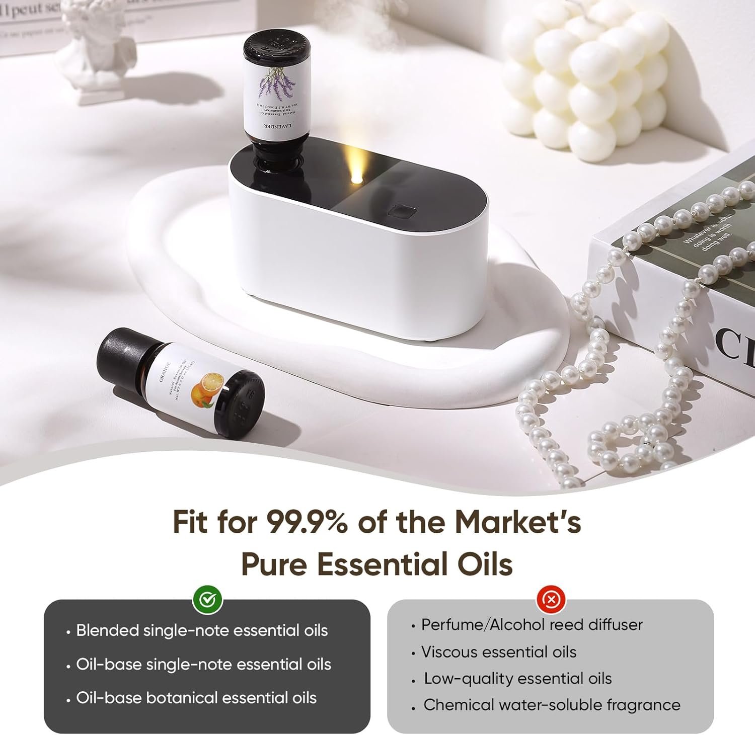 Waterless Diffuser for Essential Oil, Battery Operated Scent Air Aromatherapy Diffuser, Mini Aroma Diffusers with 3 Intermittent Mist Modes, Cycle Start, for 400 sq.ft Room Home Office Bedroom