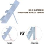 Absolutely love this plant shelf.  Sturdy material.  It is hollow metal for the legs and wood like material for the shelves.  But again, don’t let the material fool you…it is sturdy and when you add plants added sturdiness.  Has “grippers” on the bottom of the legs to keep from slipping. The grippers work great, as I shifted back and forth until I had positioned exactly where I wanted it and with all items on the shelves; nothing fell nor the shelves came apart.  No tools nor hardware provided/needed; everything fits perfectly inside each other.  Comfortably holds 4″ pots…I have 3 on the top shelf with spacing.