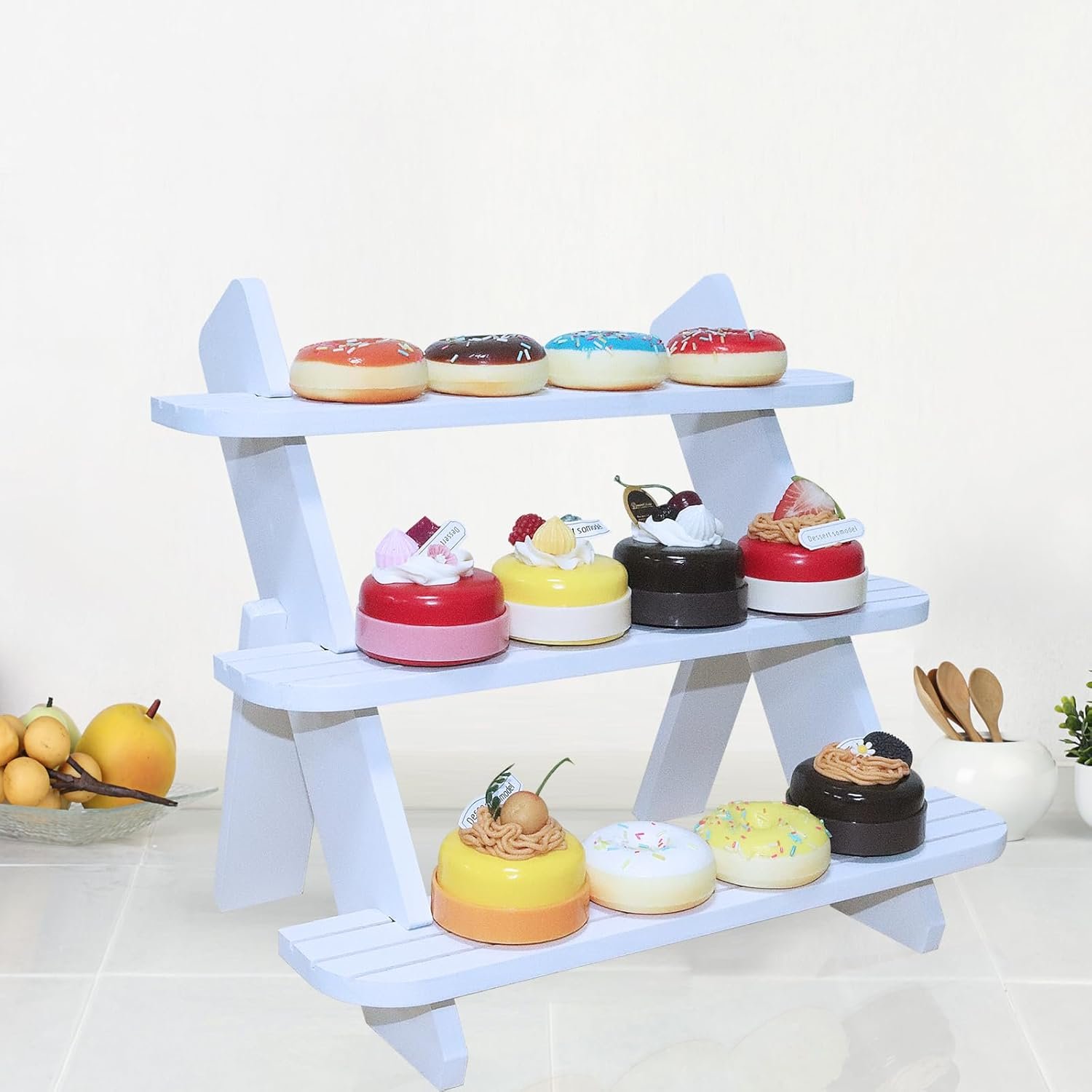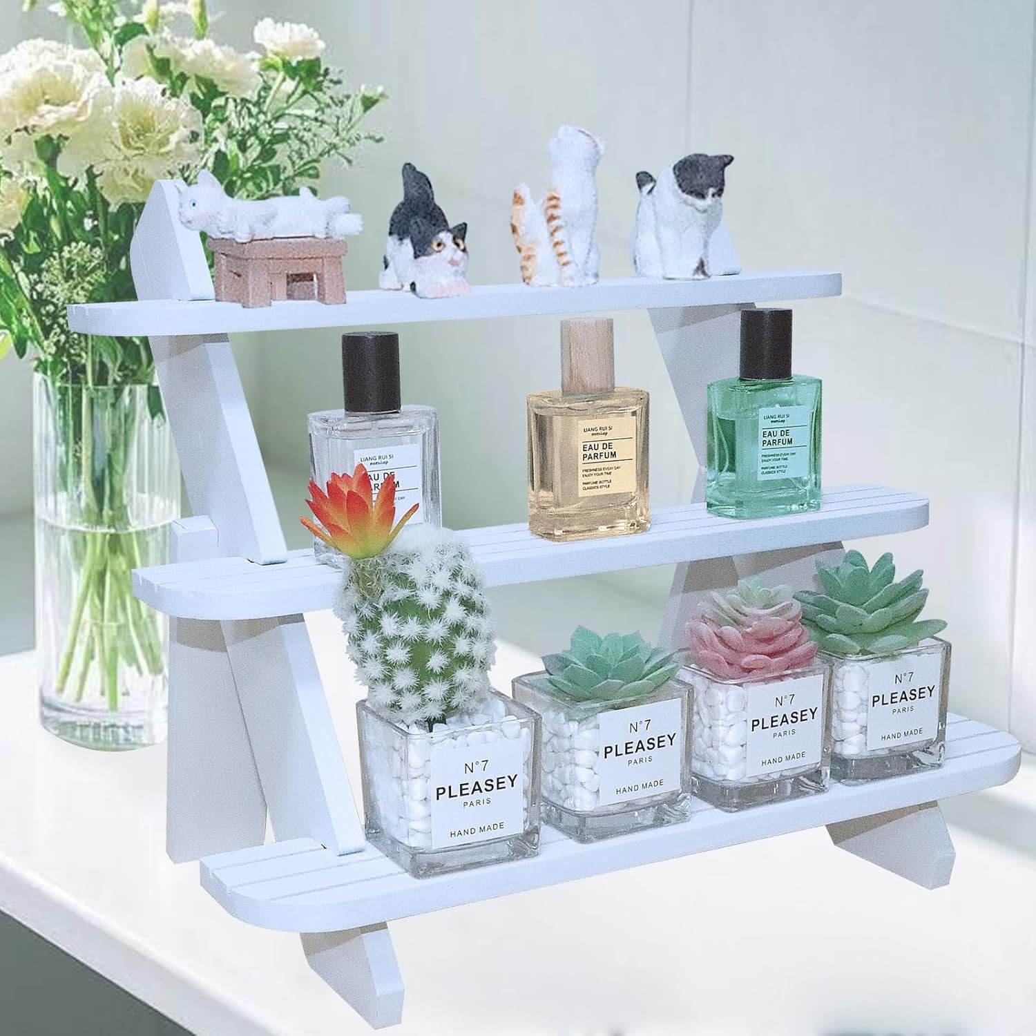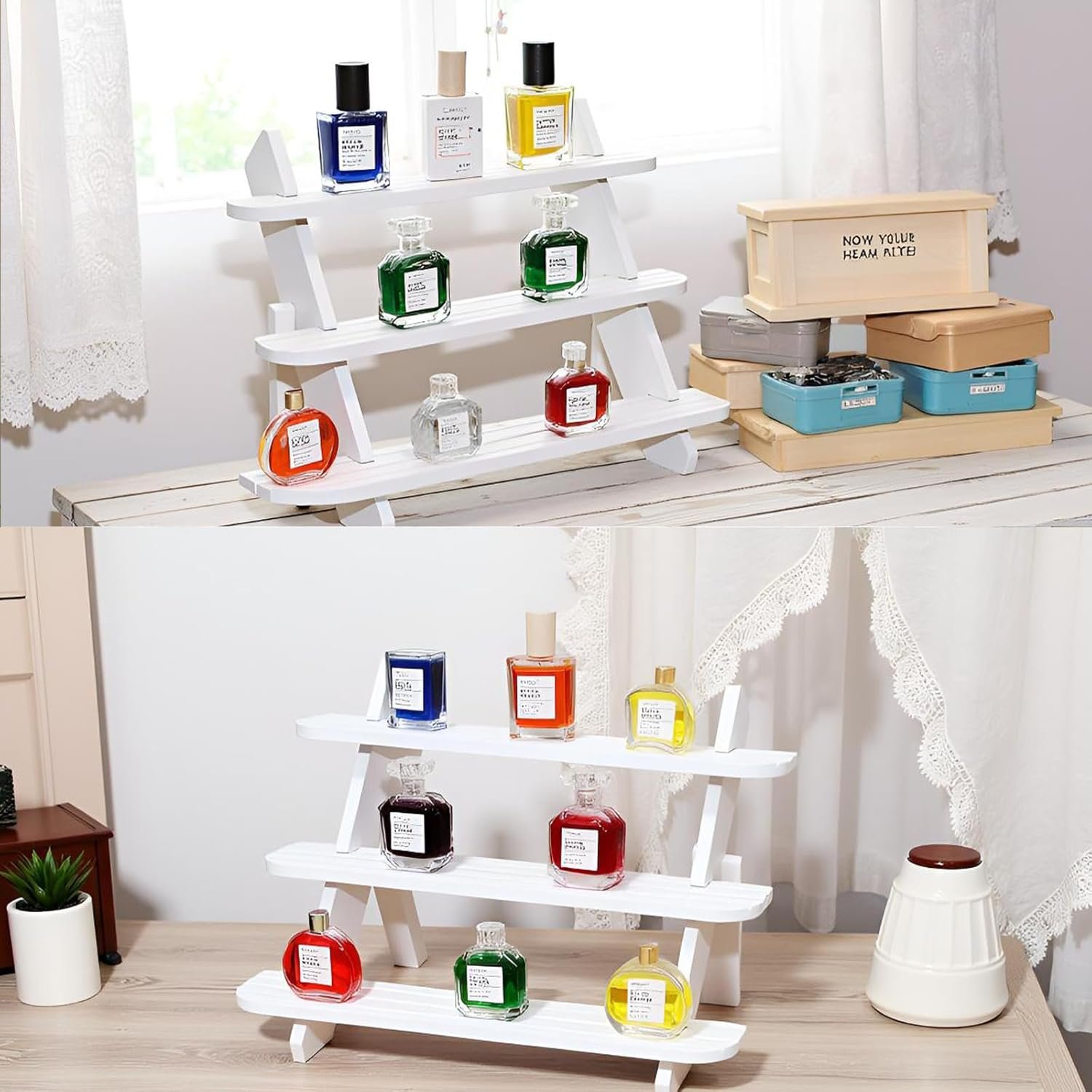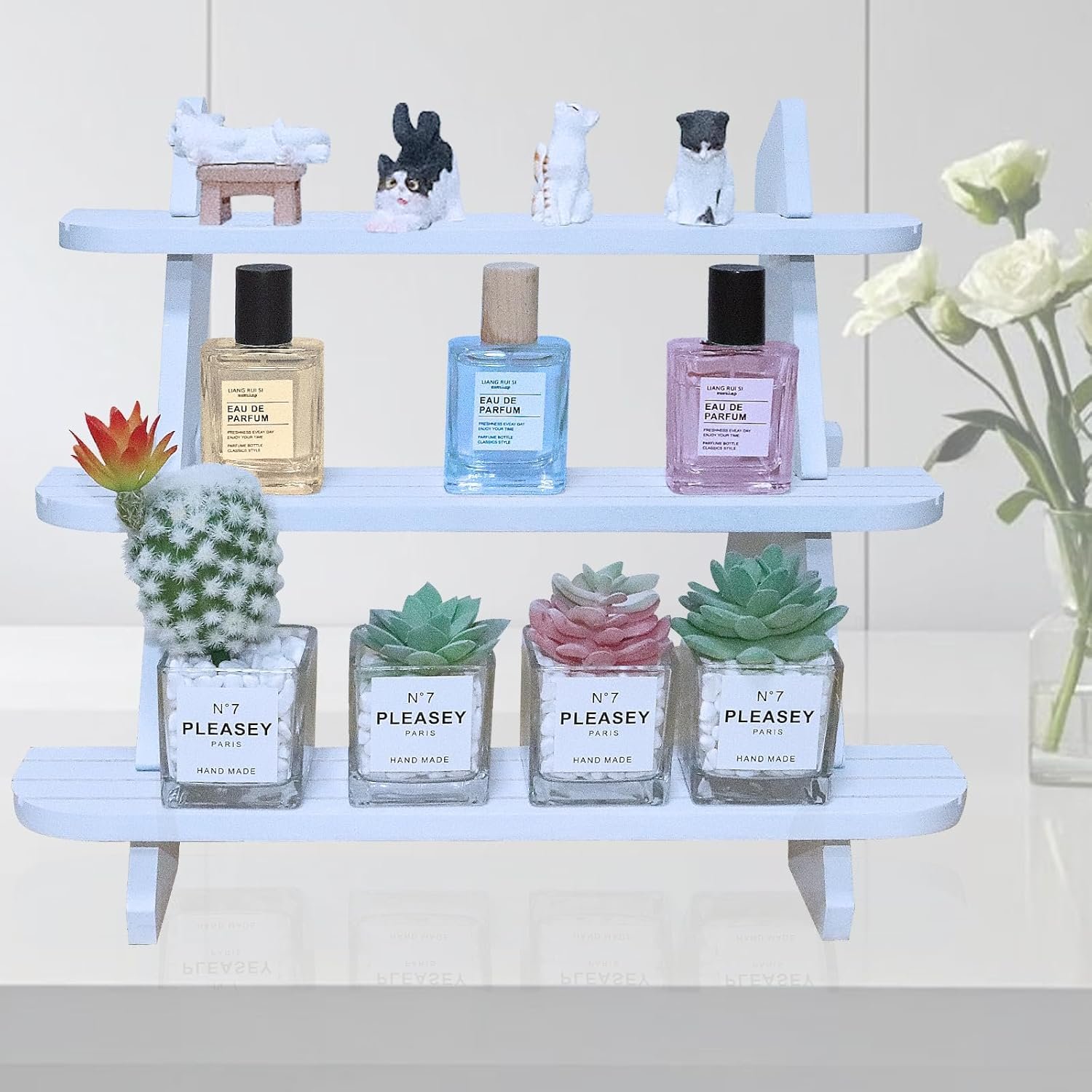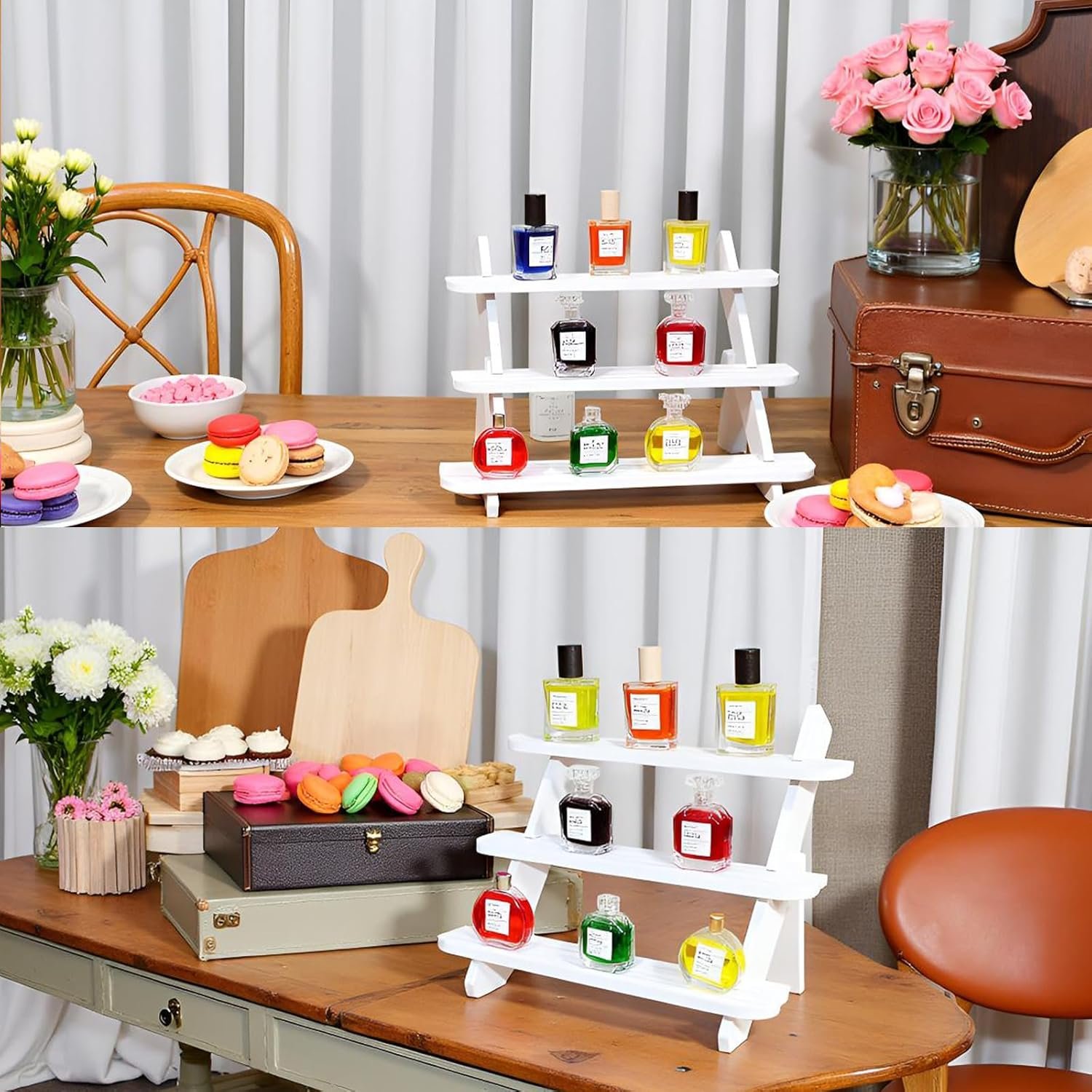 Wooden Display Riser Stand,3 Tier Perfume and Cologne Organizer Stands,Farmhouse Cupcake Stands,Table Display Stand For Vendors and Home Using,Rustic Display Shelf for Candles