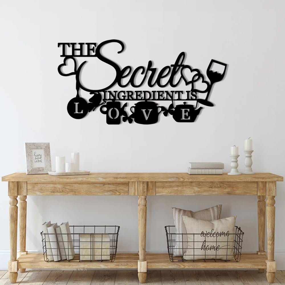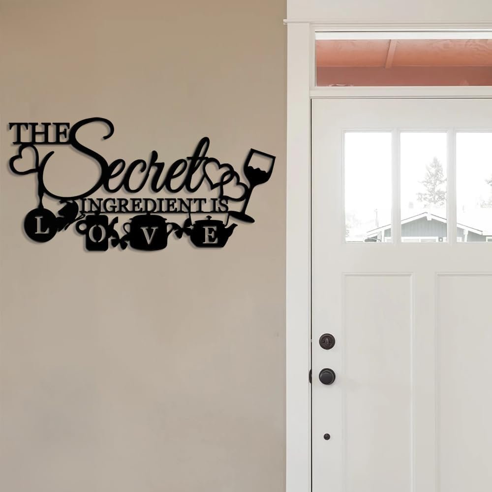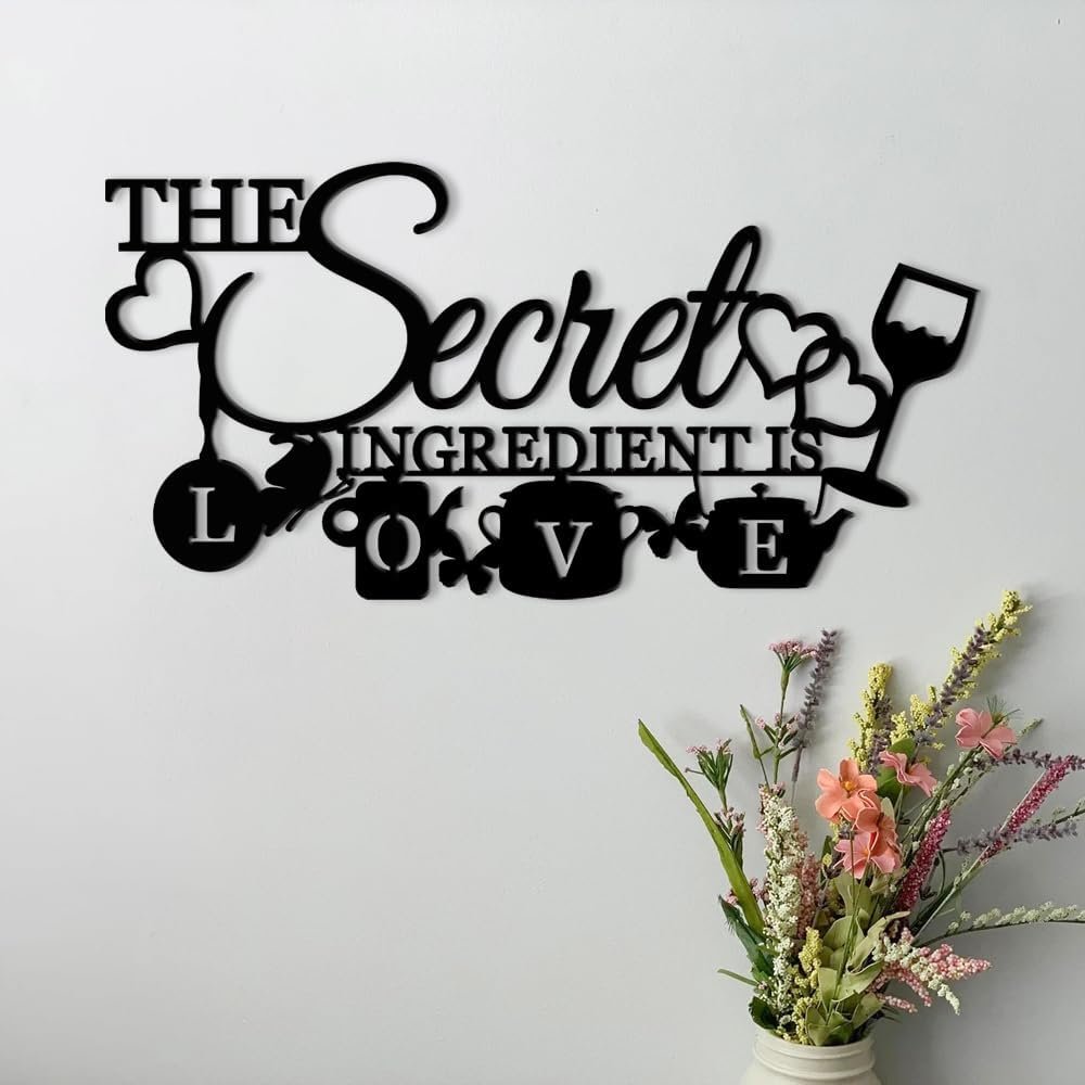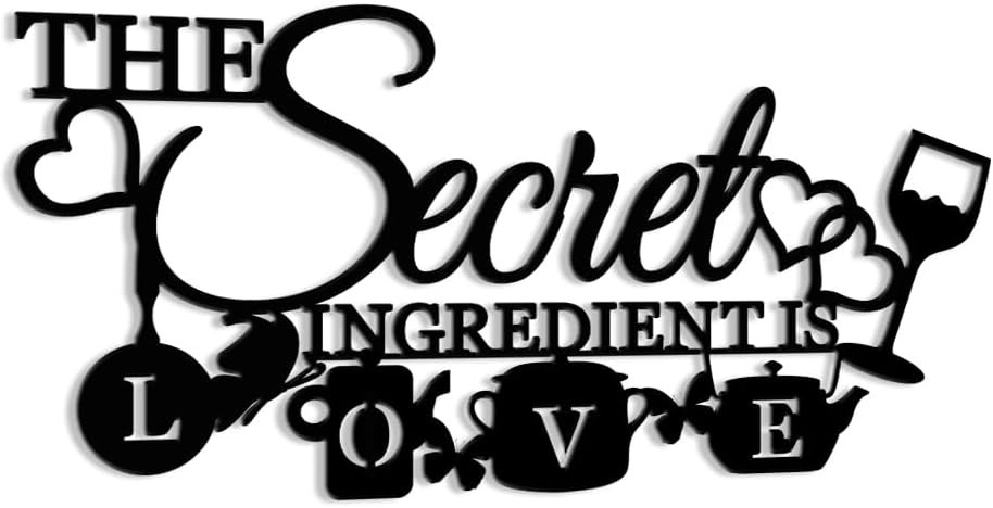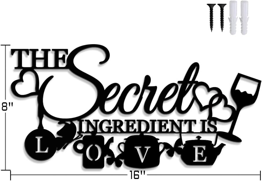 8 reviews for XORT The Secret Ingredient is Love Metal Wall Art Sign, Farmhouse Dining Room Kitchen Wall Decor Housewarming Gift Counter Pantry Sign. (Black -16 x 8 inch)