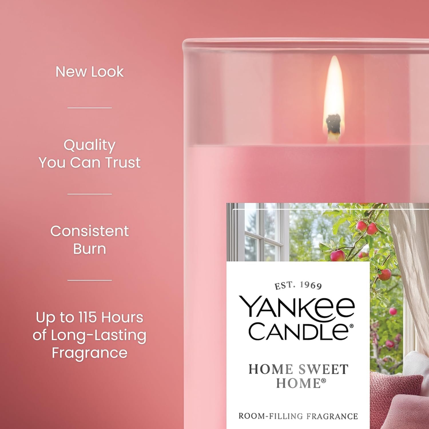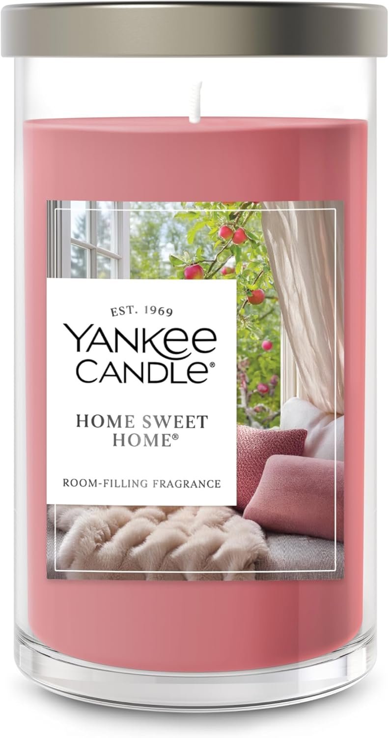 Yankee Candle Medium Pillar Scented Candle with up to 115 Hour Burn Time, Premium Plant Wax Blend for Consistent Burn, 14.25 oz Pillar Candle with Room Filling Fragrance, Home Sweet Home