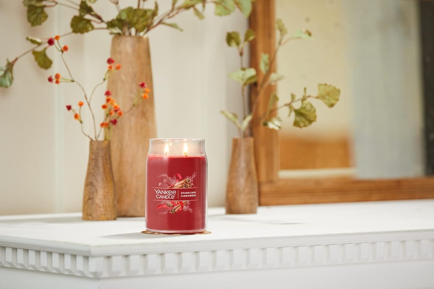Yankee Candle Sparkling Cinnamon Scented, Signature 20oz Large Jar 2-Wick Candle, Over 60 Hours of Burn Time, Christmas | Holiday Candle