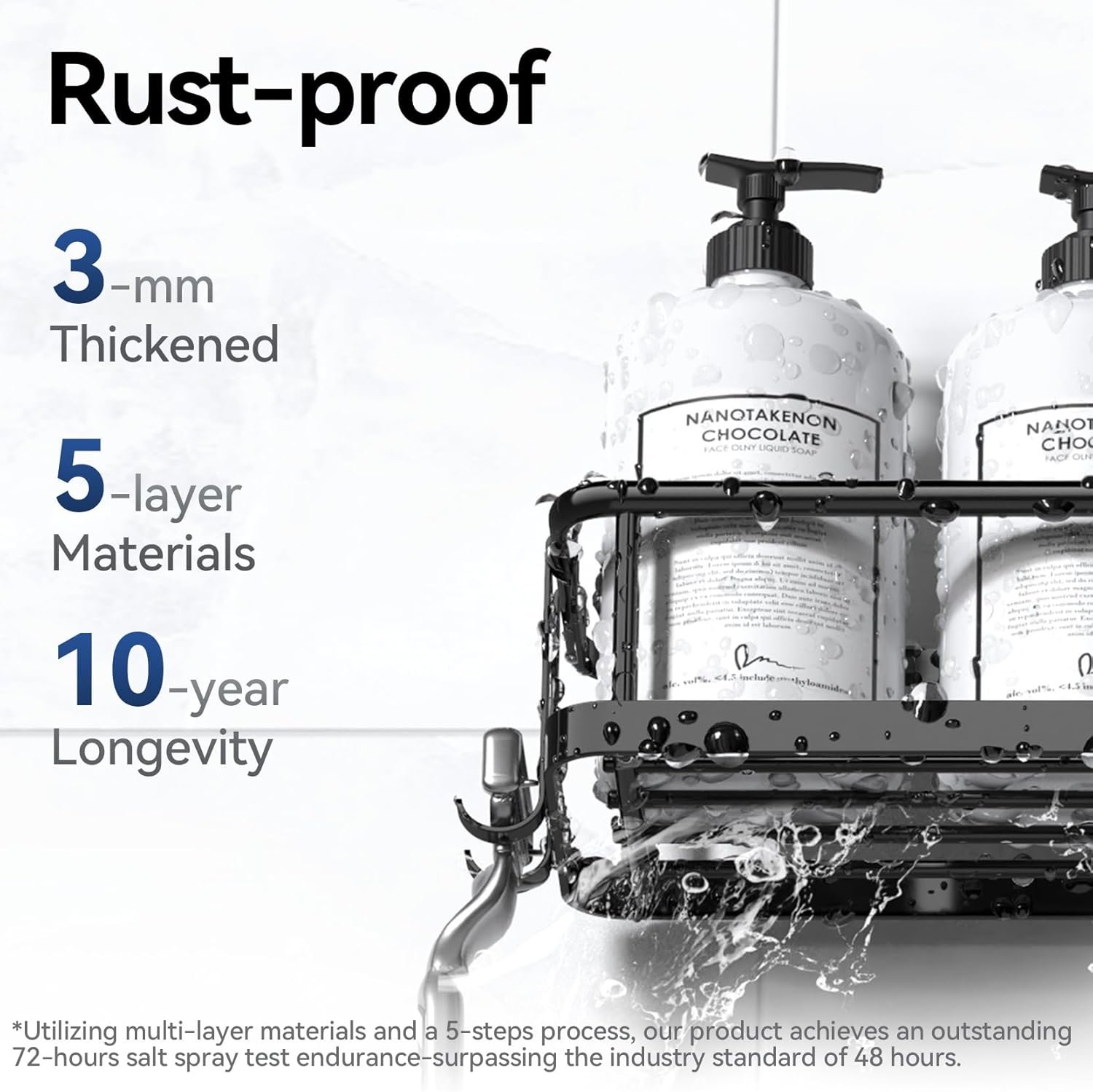 Buy it! It’s very nice and easy to install perfect size and very sturdy. I’m not sure how rusting resistance is since have had it for two months for so far it’s great. I love it. My shower looks organized and cleaner. Love how the black stands out in a nice way
