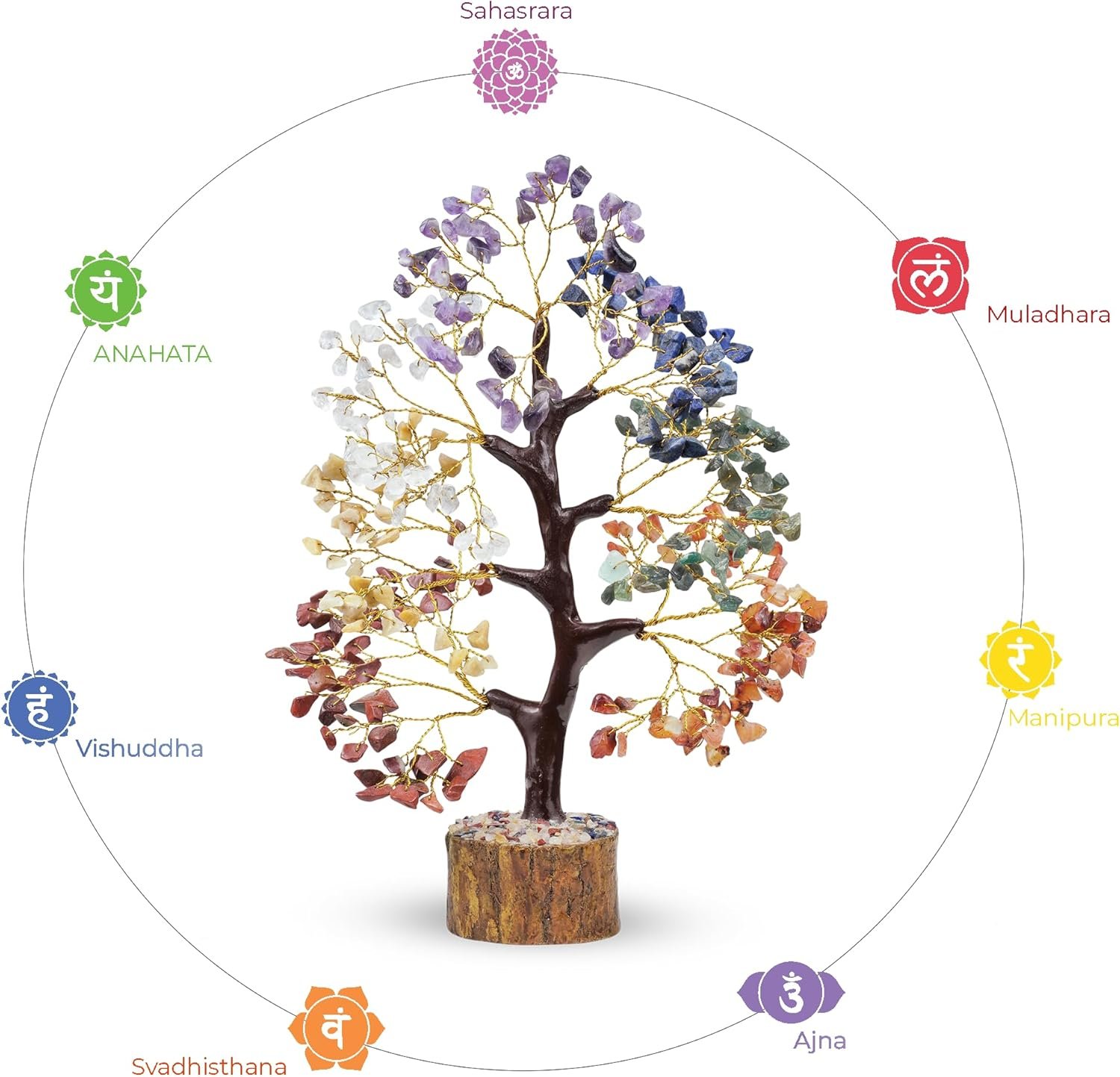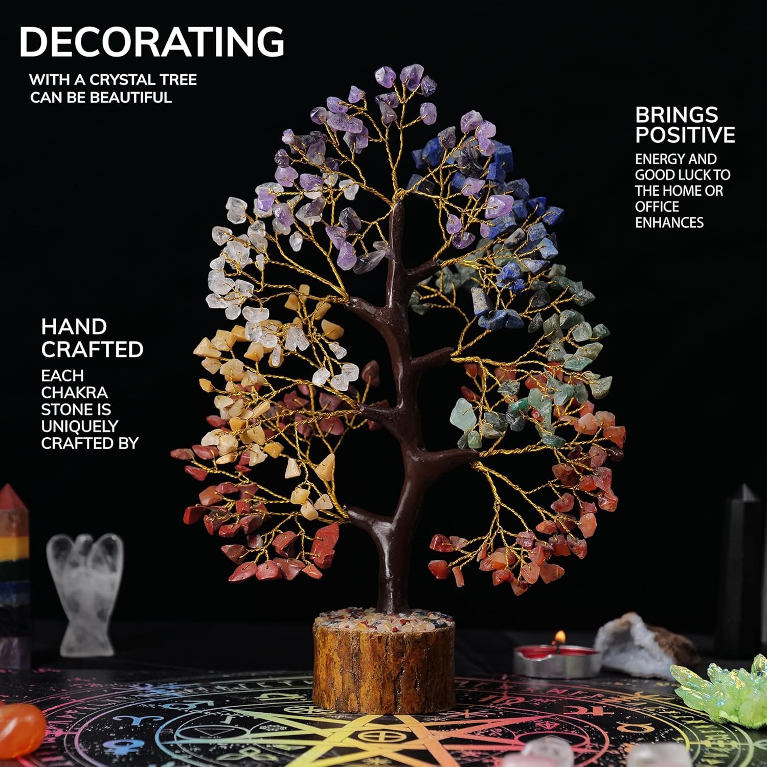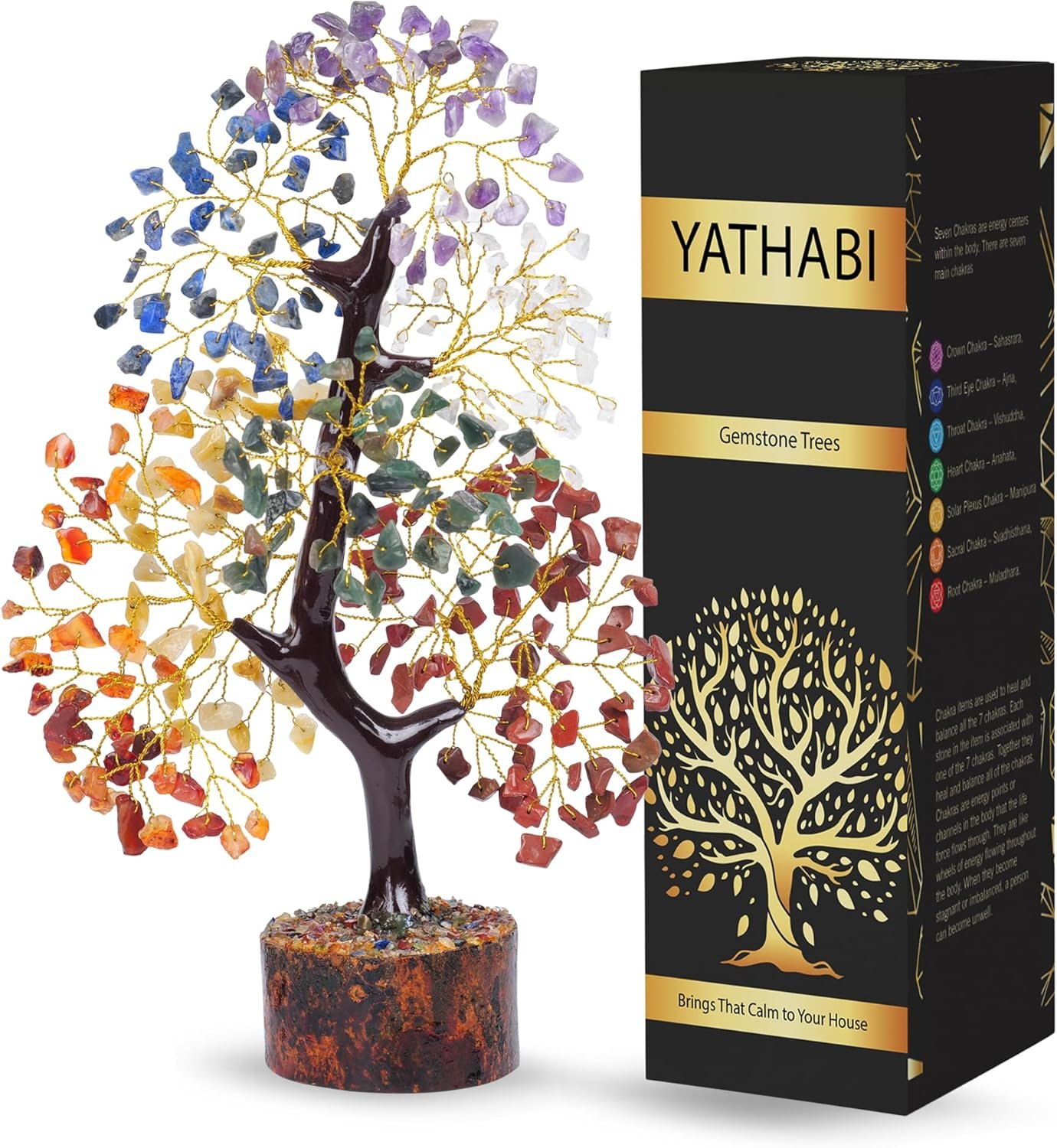 YATHABI 7 Chakra Tree of Life Decor – Crystal Tree – Feng Shui Decor – Crystal Bonsai Tree – Gem Tree – Gemstone and Crystals – Spiritual Tree – Chakra Stones – Crystal Gifts – Birthday Gift for Women