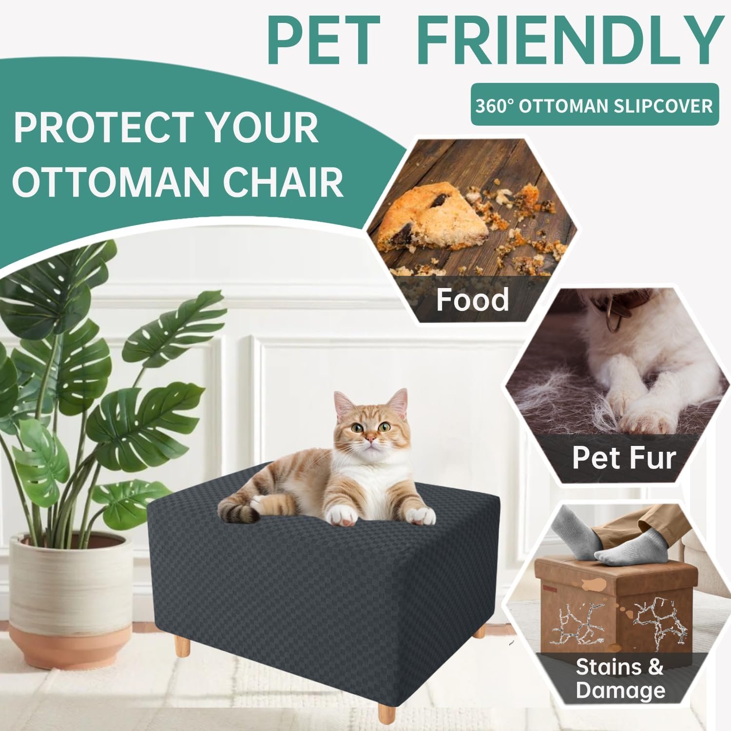 Great Ottoman cover. Super soft. Very stretchy and easy to apply. Stays in place well. Dog jumps on and off with no problems! Definitely worth it!