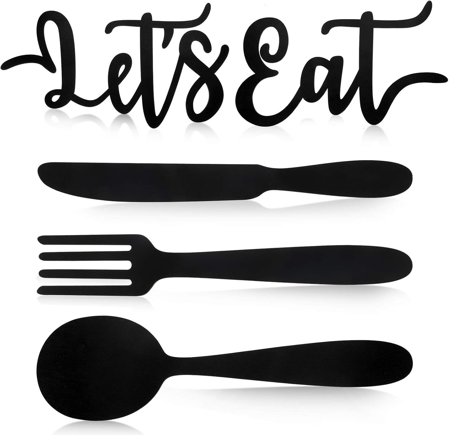 Yerliker 5 Pcs Let’s Eat Sign Kitchen Wall Decor Wooden Fork Spoon Knife Sign Rustic Cutout Eat Kitchen Hanging Decor for Home Dining Room Bar Cafe Restaurant