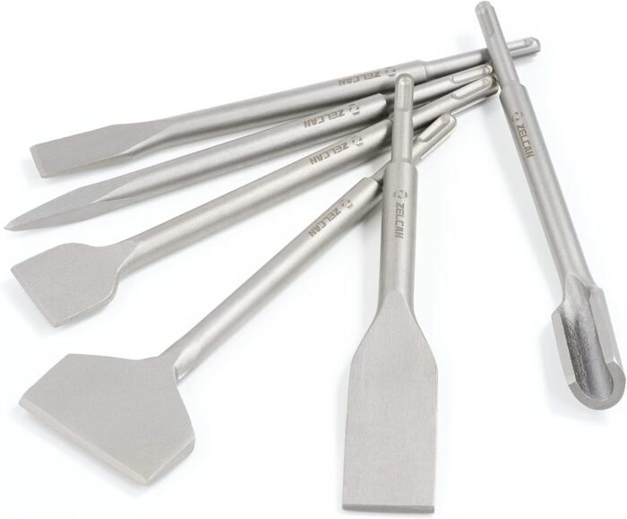 13 reviews for ZELCAN Chisel Set with SDS Plus Shanks, 6pc Masonry Concrete Drill Bit Set, Tile Grooving Scraping Flat Point Scaling Chisels 40Cr Steel Rotary Hammer Drill Tool Kit SDS Plus Bits for Home Improvement