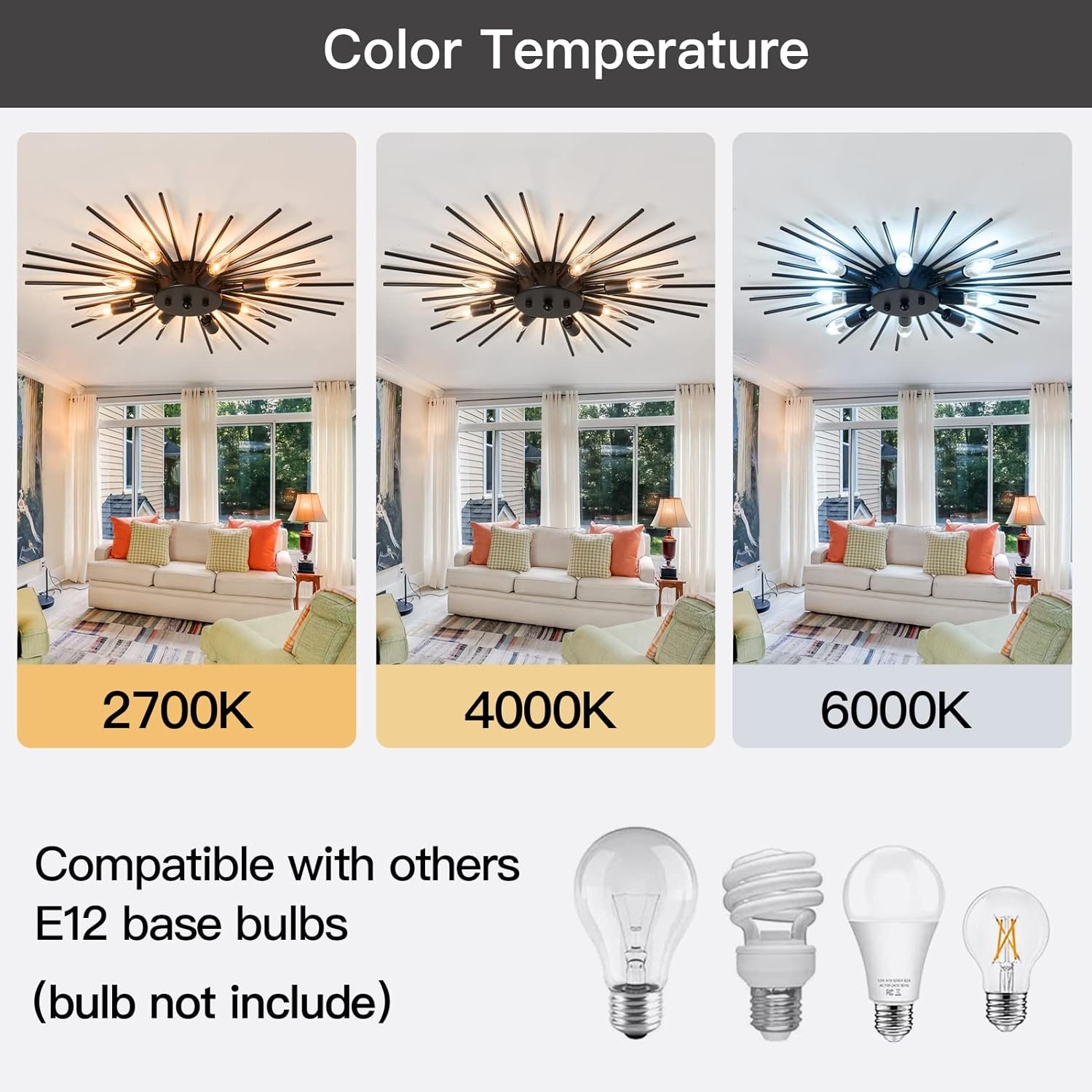 12 reviews for ZGLAOJT Semi Flush Mount 8 Light Ceiling Light Modern Metal Ceiling Lighting Black Light Fixture for Farmhouse Kitchen Dining Room Bedroom Hallway Living Room.
