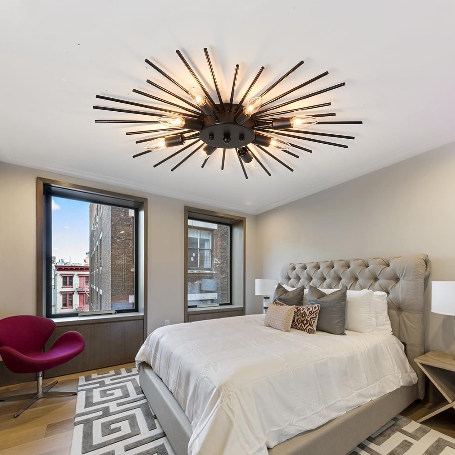 ZGLAOJT Semi Flush Mount 8 Light Ceiling Light Modern Metal Ceiling Lighting Black Light Fixture for Farmhouse Kitchen Dining Room Bedroom Hallway Living Room.