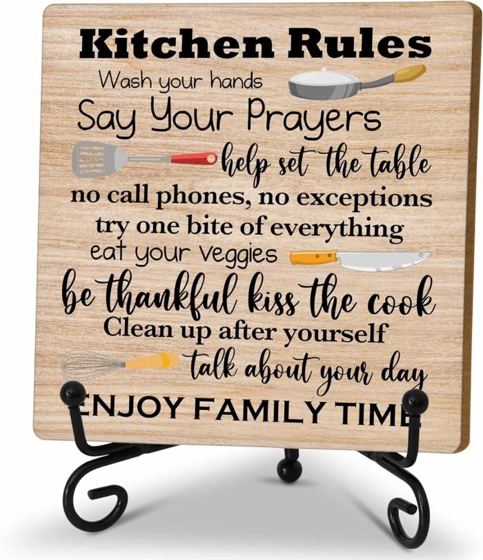 2 reviews for Zmyollo Kitchen Desk Decor Sign, Rustic Kitchen Wooden Sign With Stand, Kitchen Rules Sign For Farmhouse Home Kitchen Bar Shelf Table, Gifts For Family Friend Woman Man, C17