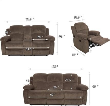 Corduroy Living Room Furniture Set Reclining Sofa Set Loveseat Furniture Sets in Living Room Sofa Recliners (3 Pieces, Taupe Corduroy)